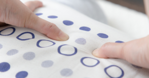 このツボの見つけ方には、ゆるツボ手ぬぐいを使います。