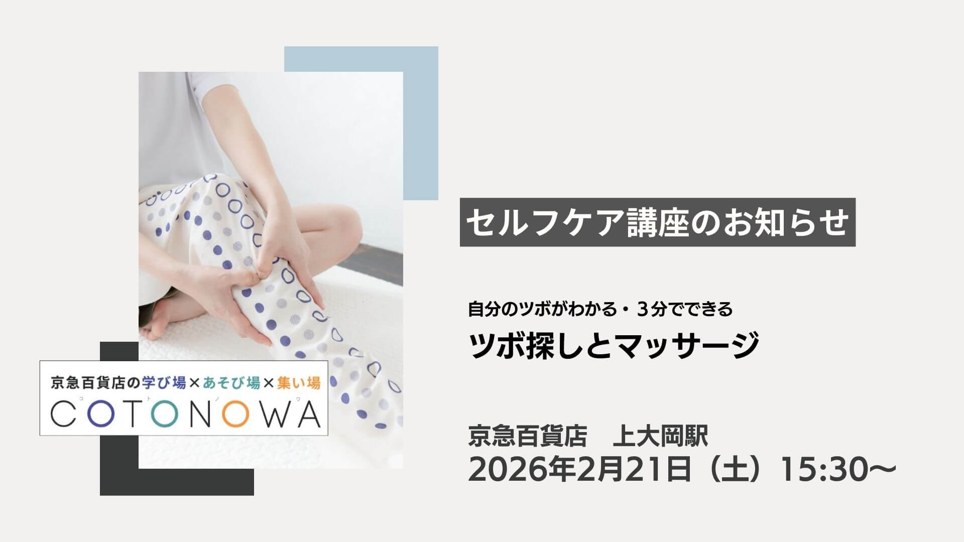 ゆるツボのセルフケア講座のお知らせです。